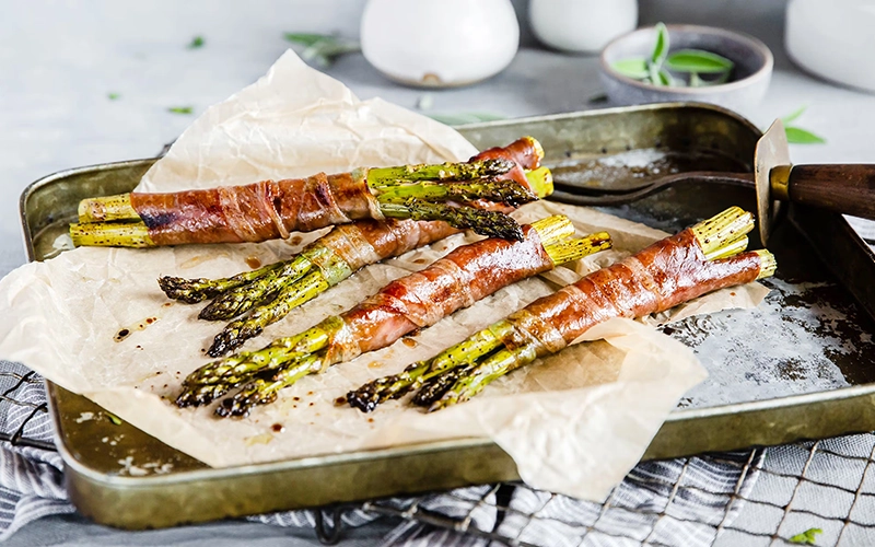 This perfect keto side dish can turn any veggie skeptic into a veggie fan. Serve these tasty bacon-wrapped asparagus spears with a juicy steak or chicken and a dollop of Parmesan butter for a complete low carb meal.